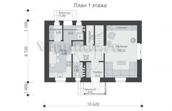 | Размеры дома: | 6.72м×10.62м |