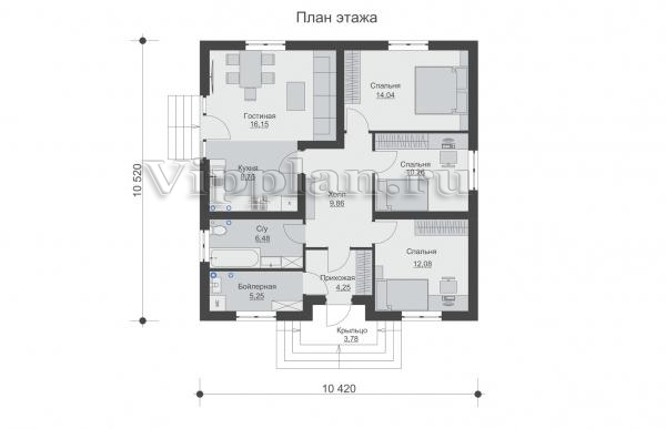 | Размеры дома: | 10.52м×10.42м |
